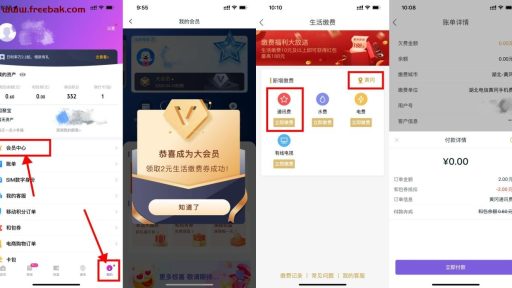 活动介绍 【移动和包老用户领取2元生活缴费券】 参与方式 打开和包APP->我的->会员中心->体验白银会员->领取2元无门槛生活缴费券->首页“生活缴费”->通讯费->部分地区能0充2元话费! 测试载图